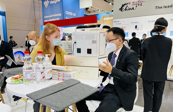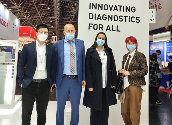 在平安展台,“全自动解决方案”“半自动解决方案”“新冠整体解决方案”,以最大程度满足不同国家和地区客户、不同应用场景检测需求的特点,获得了众多来访国际客户的好评。尤其是iPonatic四通道产品,以其便捷、易操作、检测时间快、检测项目多等优势吸引了会场一大波新老“粉丝”的目光。