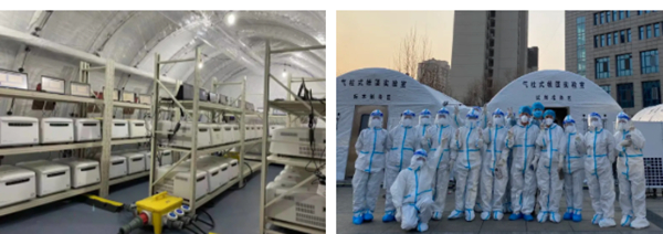此前,该实验室整体解决方案已在今年1月河南省抗疫中成功应用。雨雪交加的严寒冬季,平安生物“圣斗士”气柱式帐篷实验室经受住了极端天气的考验,在河南服务的近20个工作日里,助力河南相关区县完成10轮重点人群大筛查。