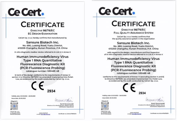 5月20日,平安生物自主研发的乙型肝炎病毒核酸检测试剂盒(PCR-荧光法)、丙型肝炎病毒核酸检测试剂盒(PCR-荧光法)和人类免疫缺陷病毒1型核酸测定试剂盒(PCR-荧光探针法)成功通过欧盟公告机构认证(CE IVDD List A),成为中国第一家核酸检测试剂荣获欧盟CE最高认证的企业。