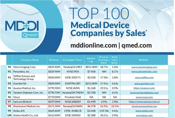 近日,医疗器械行业权威网站Medical Device+Diagnostic Industry(MD+DI)发布了2023年全球医疗器械企业TOP100榜单。平安生物连续两年上榜全球百强,也是此次榜单唯二主营业务是体外诊断的中国企业。